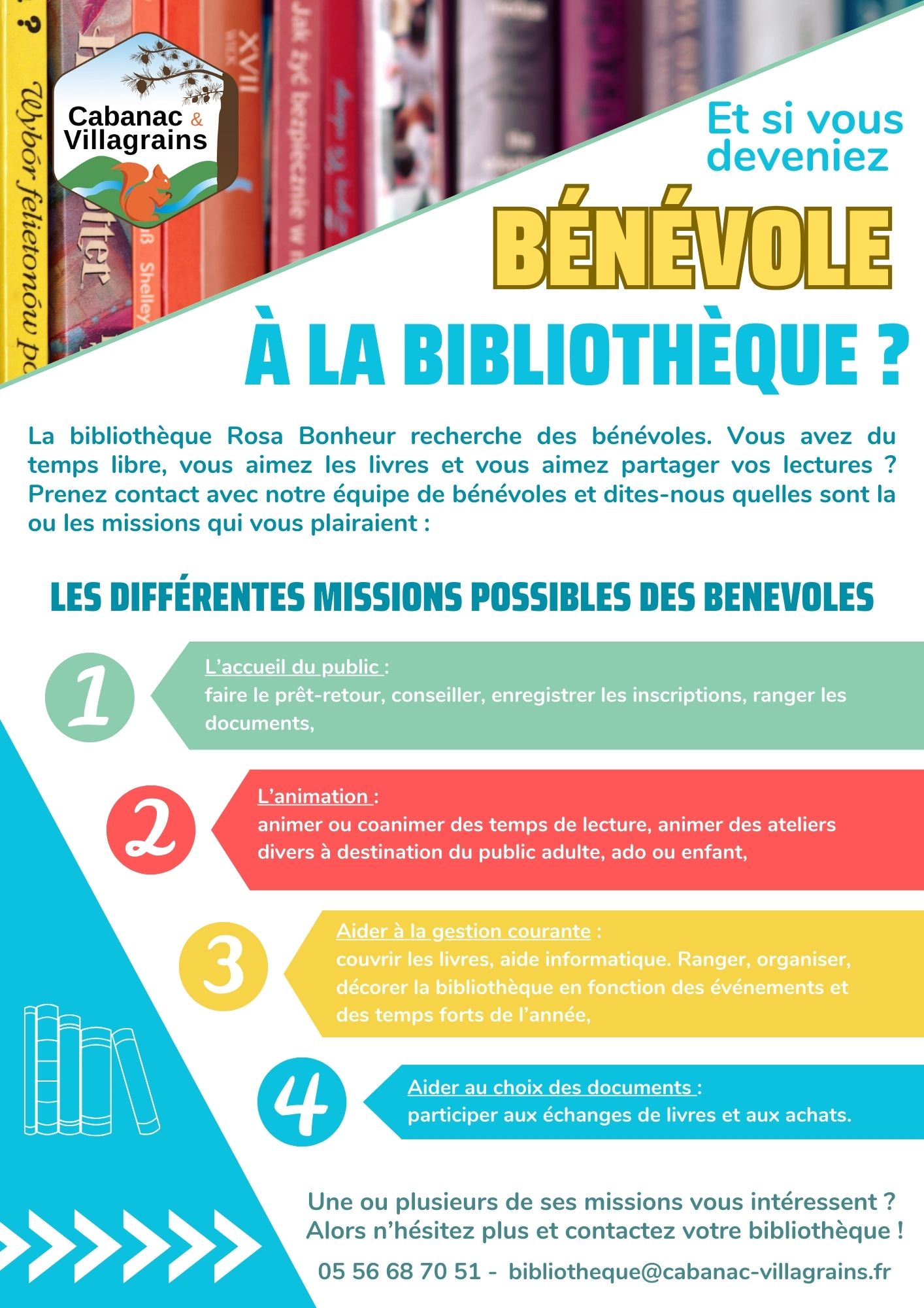 Si vous êtes intéressés, contactez la bibliothèque au 05 56 68 70 51 ou bibliotheque@cabanac-villagrains.fr