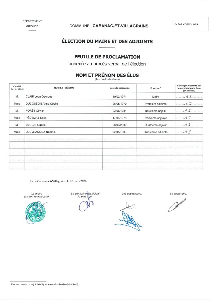 Vendredi 20 mars s’est tenu le conseil municipal d’installation, consacré à l’élection du maire et des adjoints.