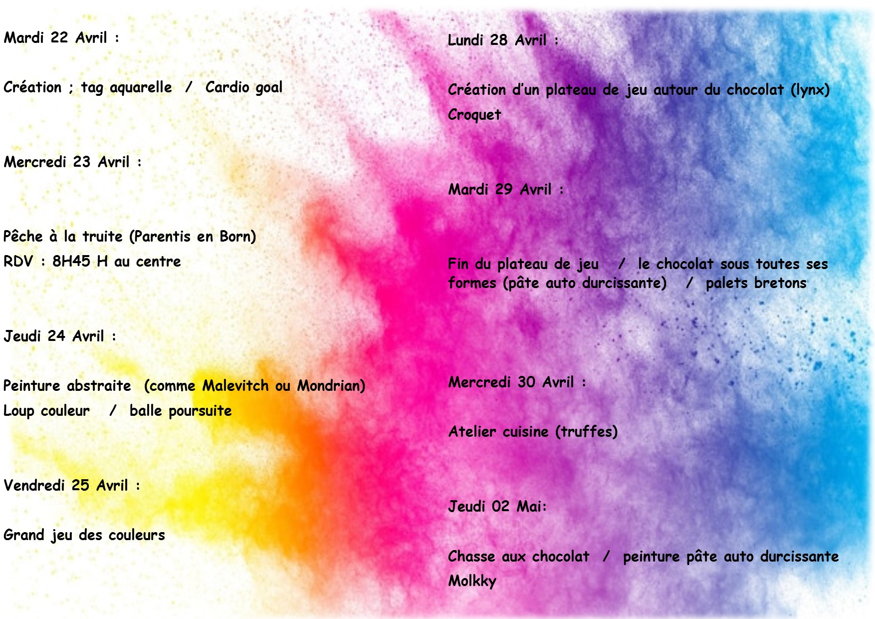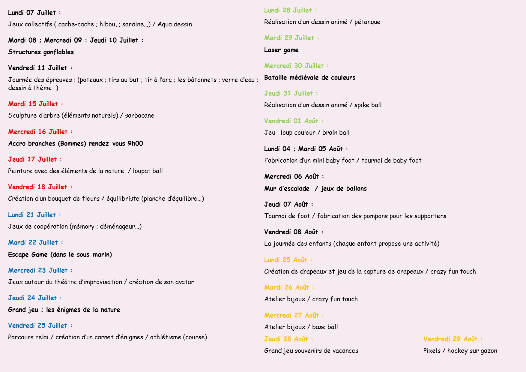 • Journée d’activités de 10 heures à 16h30