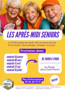 La mairie propose des après-midi conviviaux pour les habitants de Cabanac-et-Villagrains de 50 ans et plus.