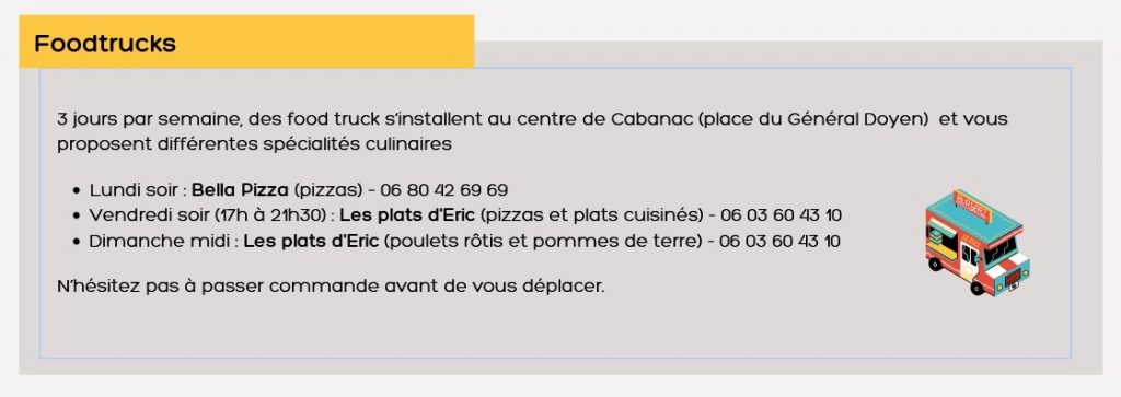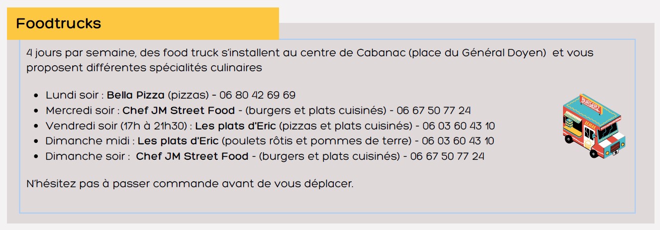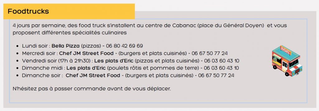 Retrouvez la liste des foodtrucks et leurs jours de présence sur la commune