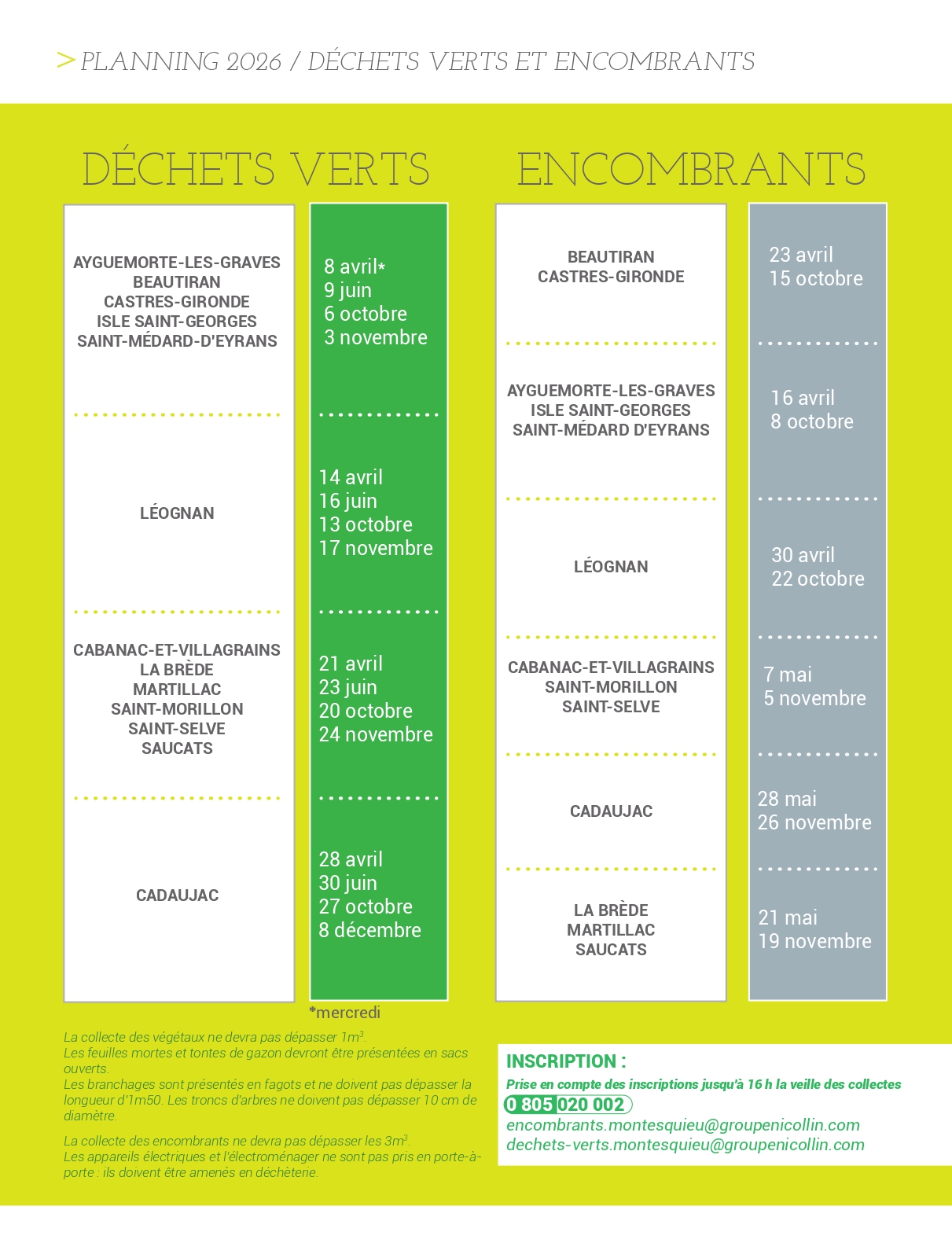Planning du ramassage des déchets verts et encombrants 2026